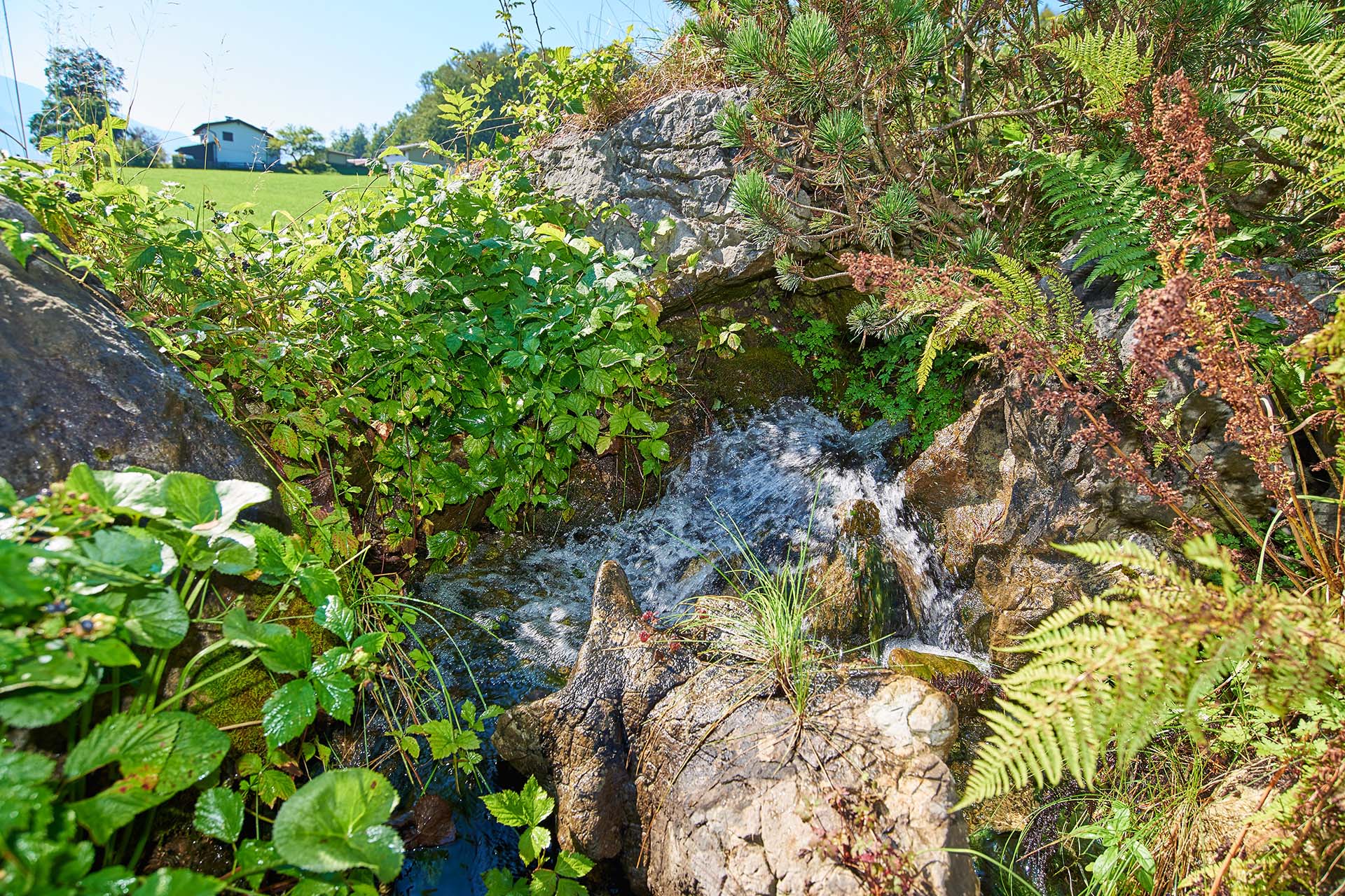 A place with a special aura. On the mountainside above Berchtesgaden, a clear, fresh mountain spring bubbles with the quality of a place of power. The knowledge that such watercourses are charged with energy is ancient, and anyone who wants to sensitise their intuition for a place that does them good has come to the right place! Water is the source of life. The human body consists of about three-quarters water and needs it for all metabolic processes.